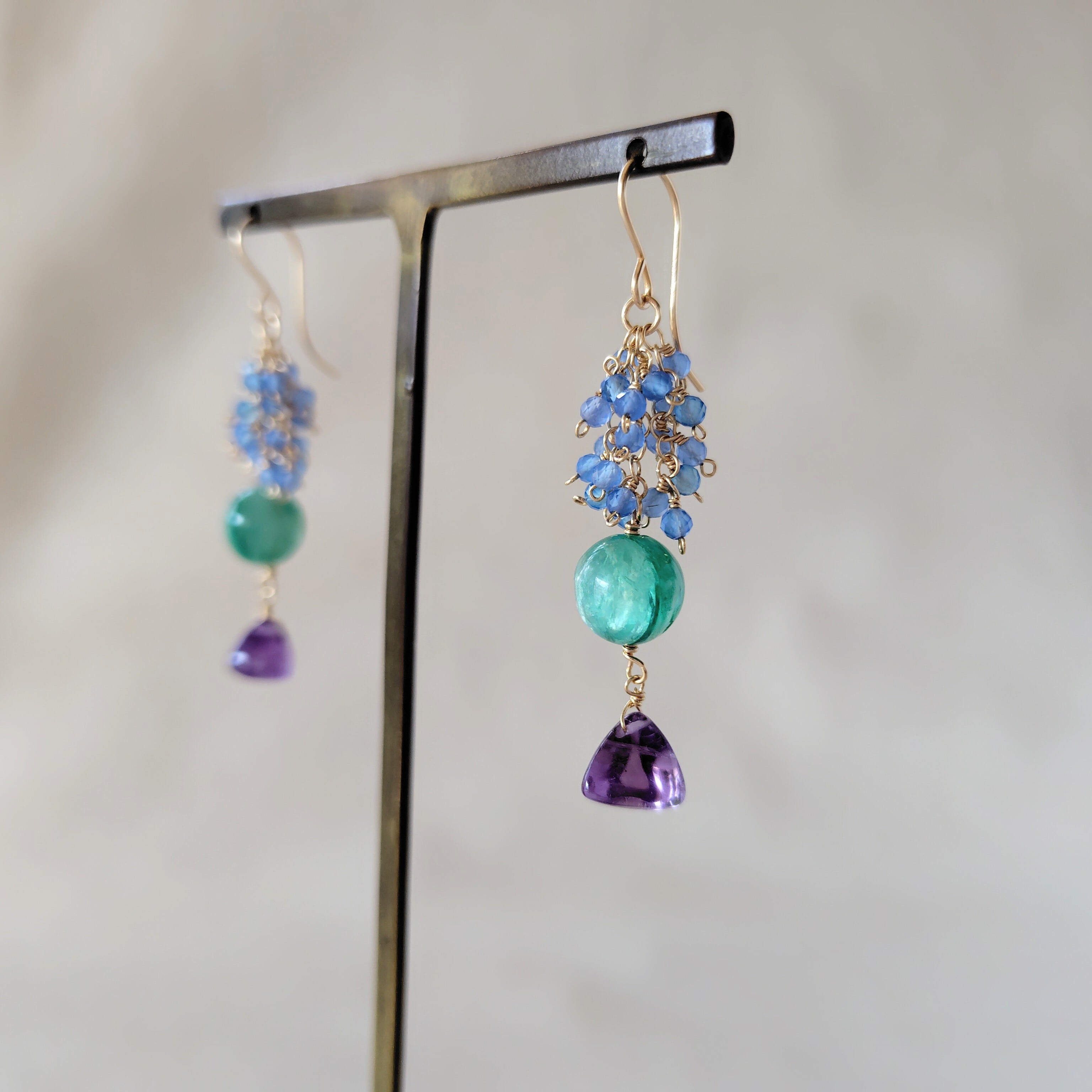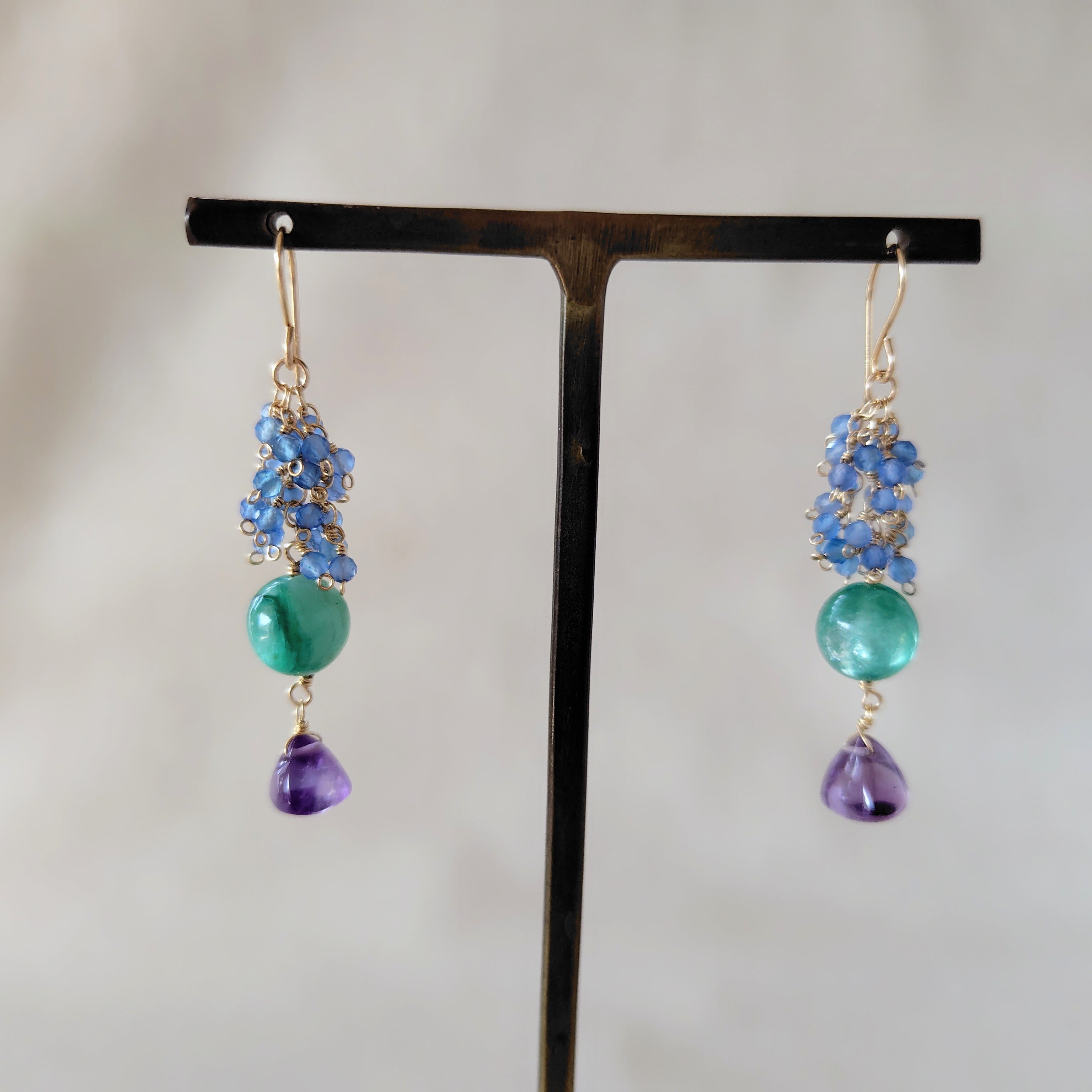 ほのおも舞踏/ブルーアゲート・グリーンレピドライト・アメジストの耳飾り