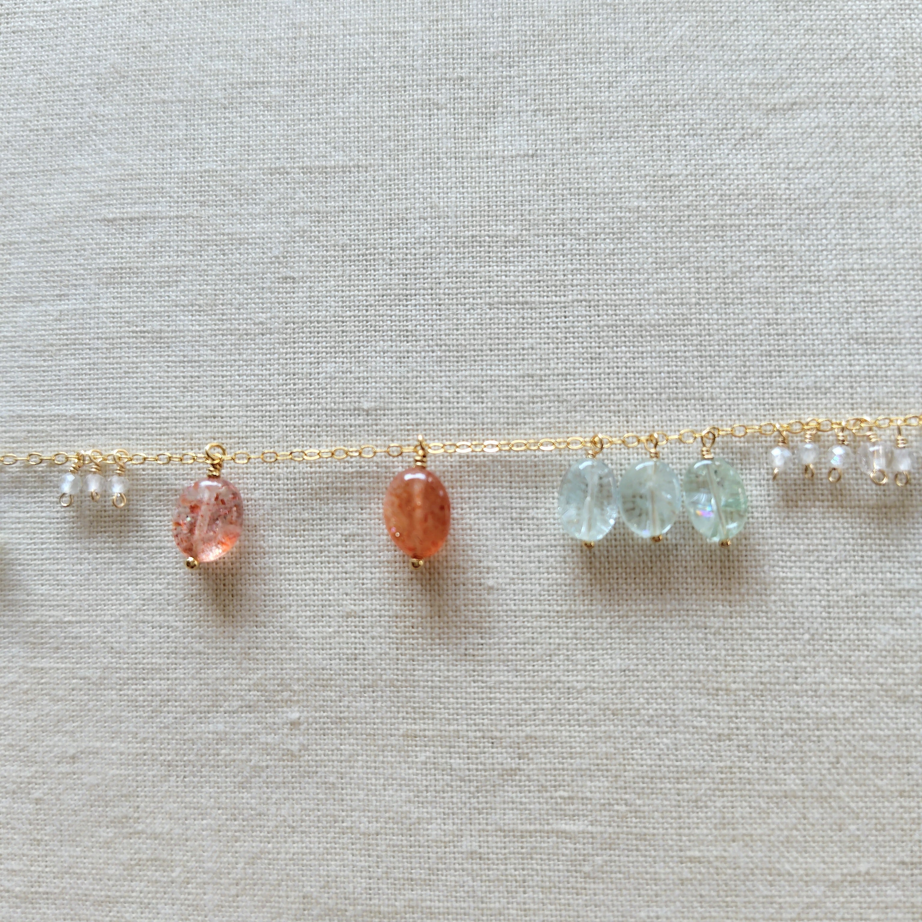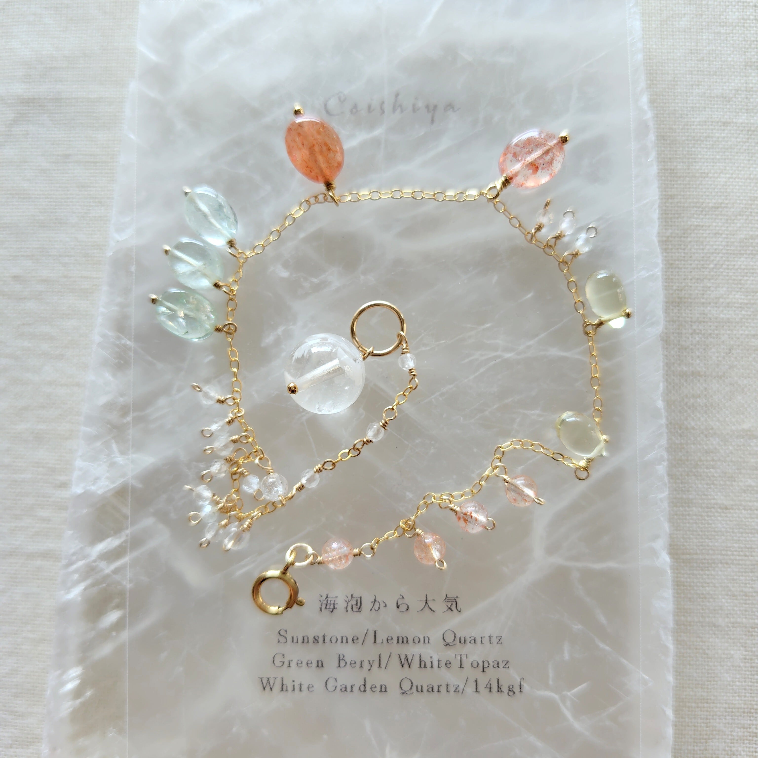 海泡から大気/サンストーンなど5種の石のブレスレット