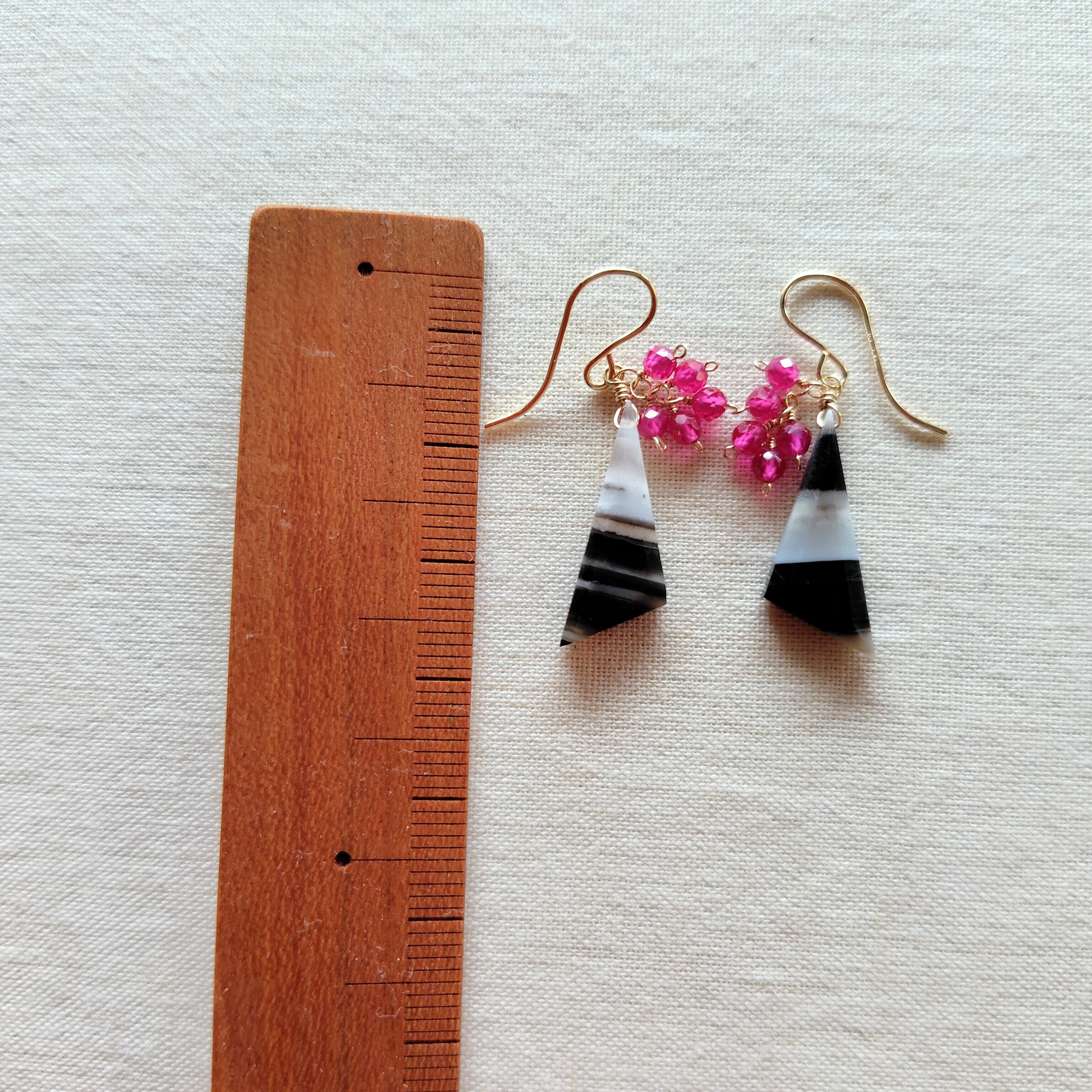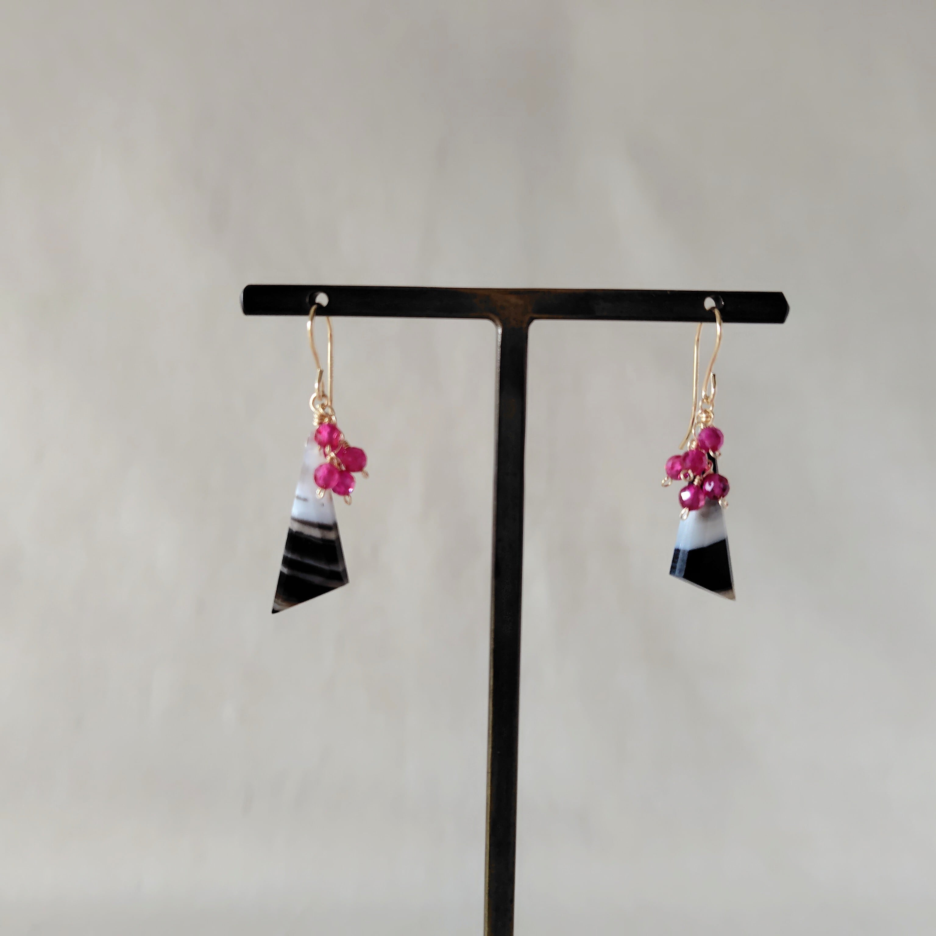 成層圏ブレンド/ストライプアゲートとシンセティックルビーの耳飾り