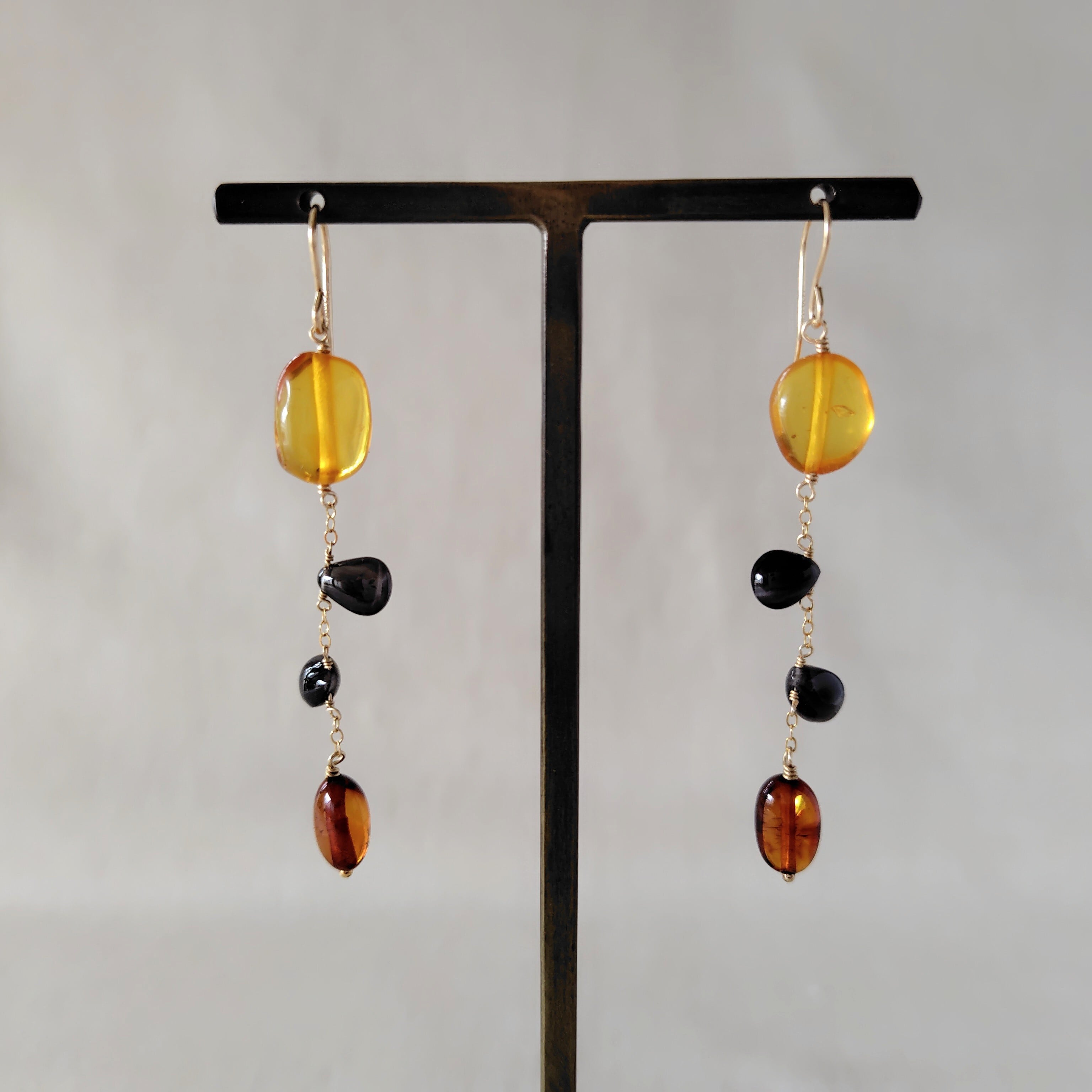 おうごんの実/2色の琥珀とシリマナイトの耳飾り