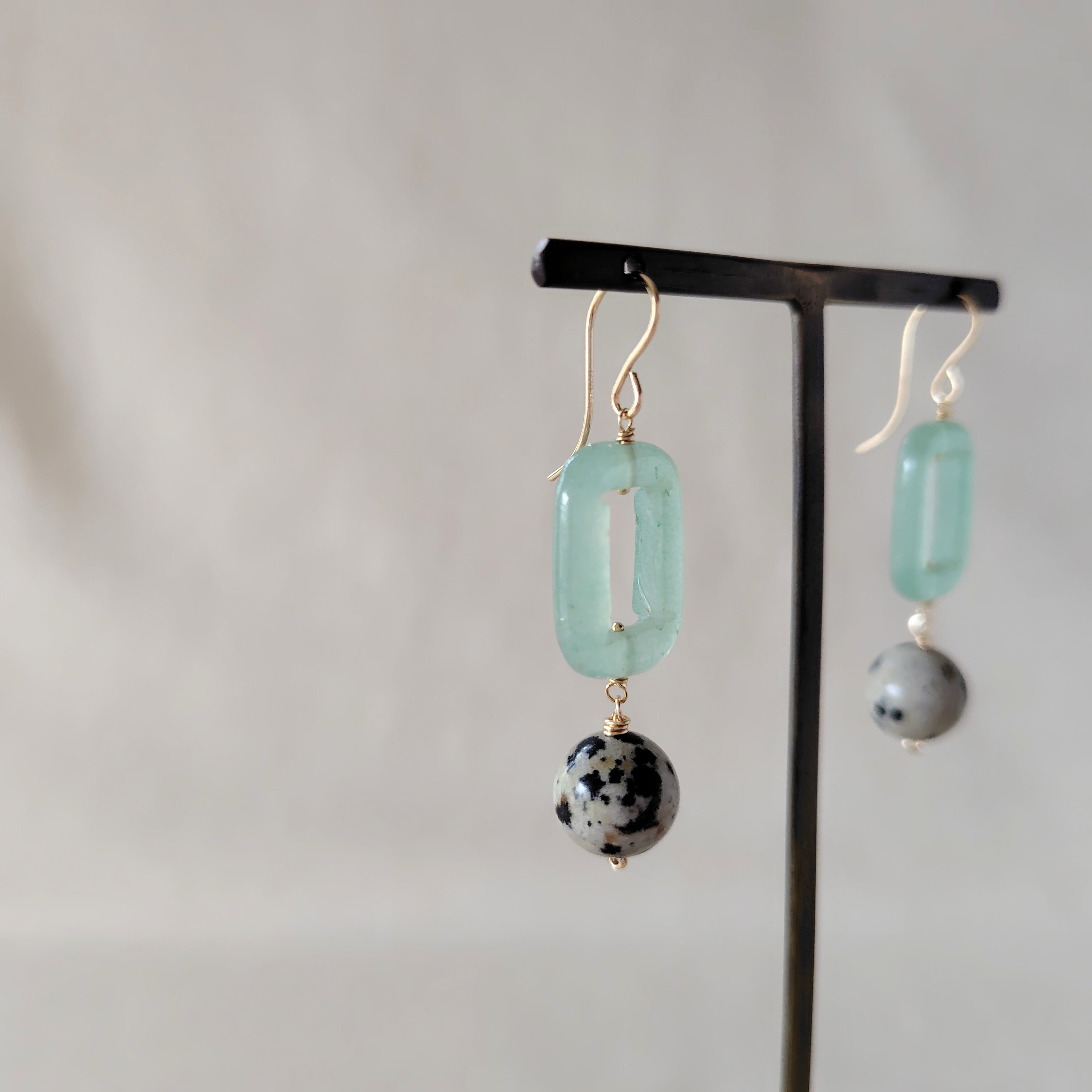 ひとやすみ茶/グリーンアベンチュリンとダルメシアンジャスパーの耳飾り