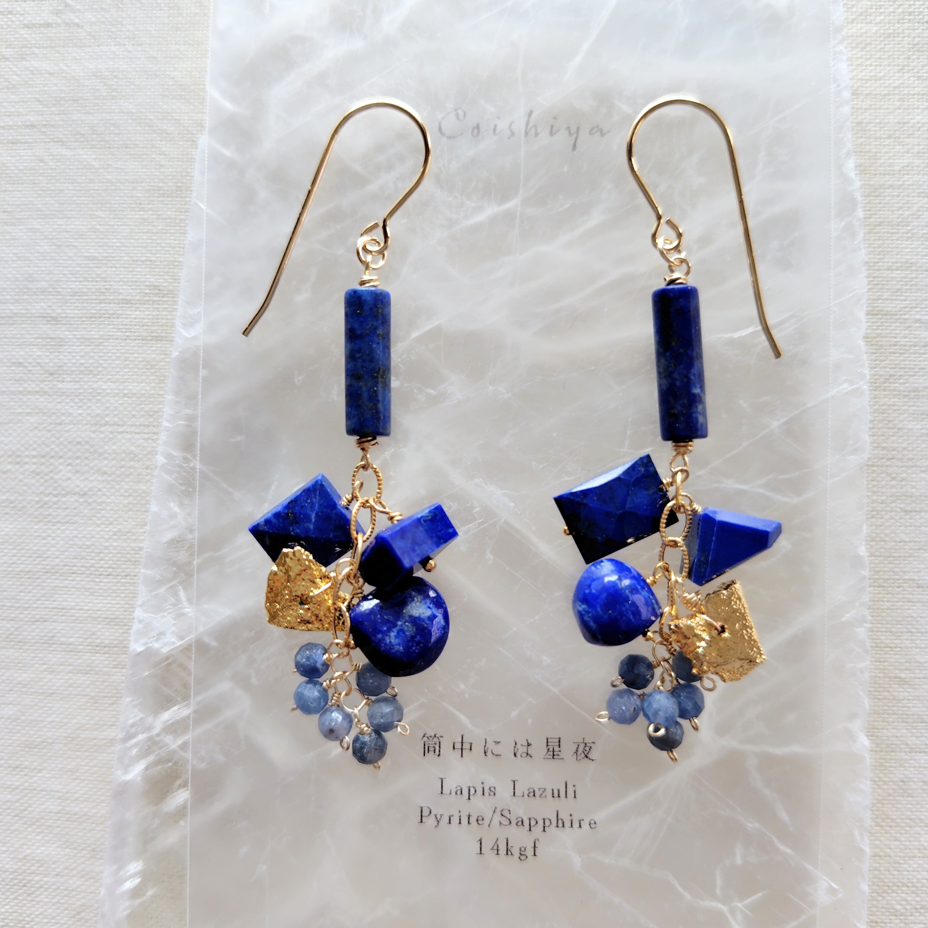 筒中には星夜/ラピスラズリ・パイライト・サファイアの耳飾り