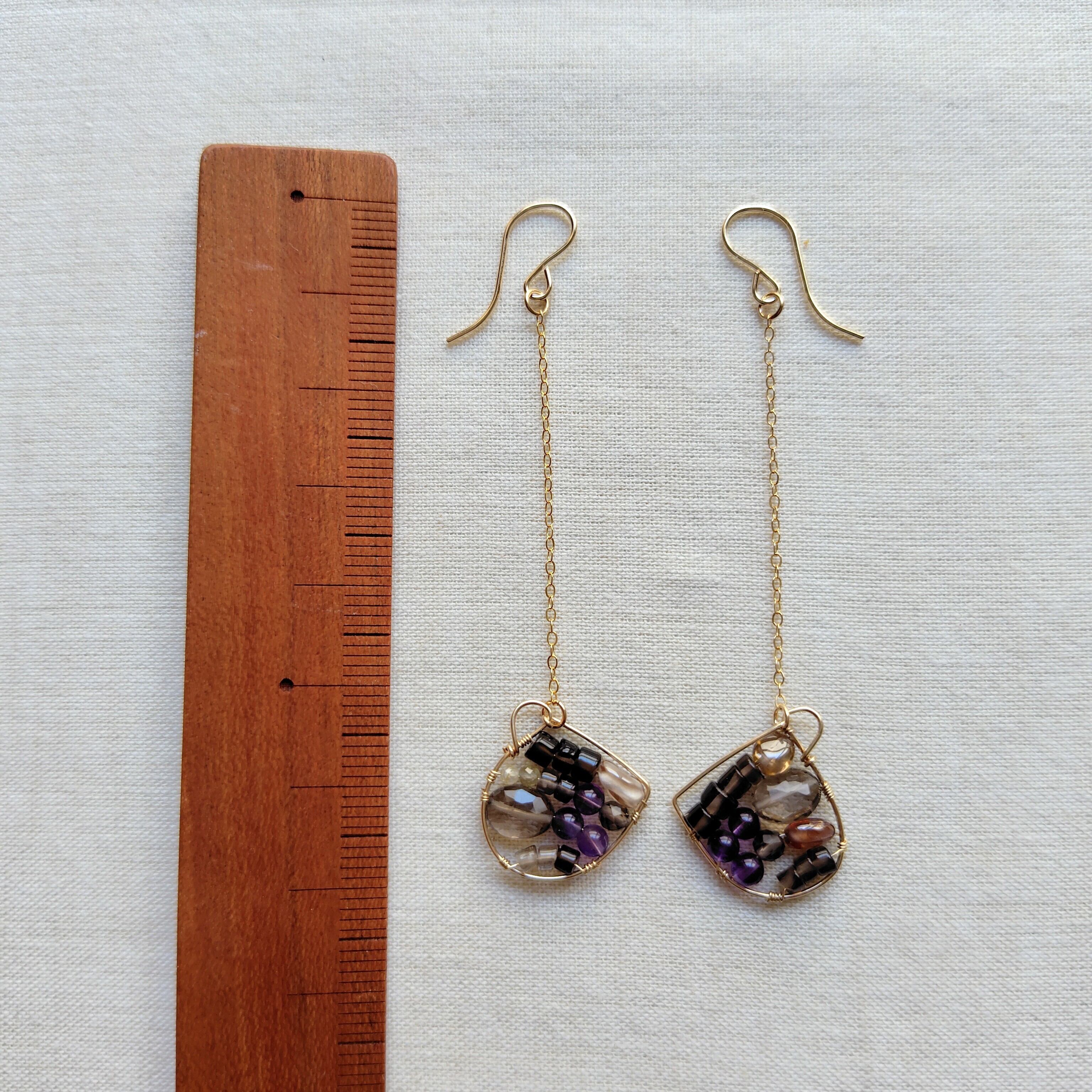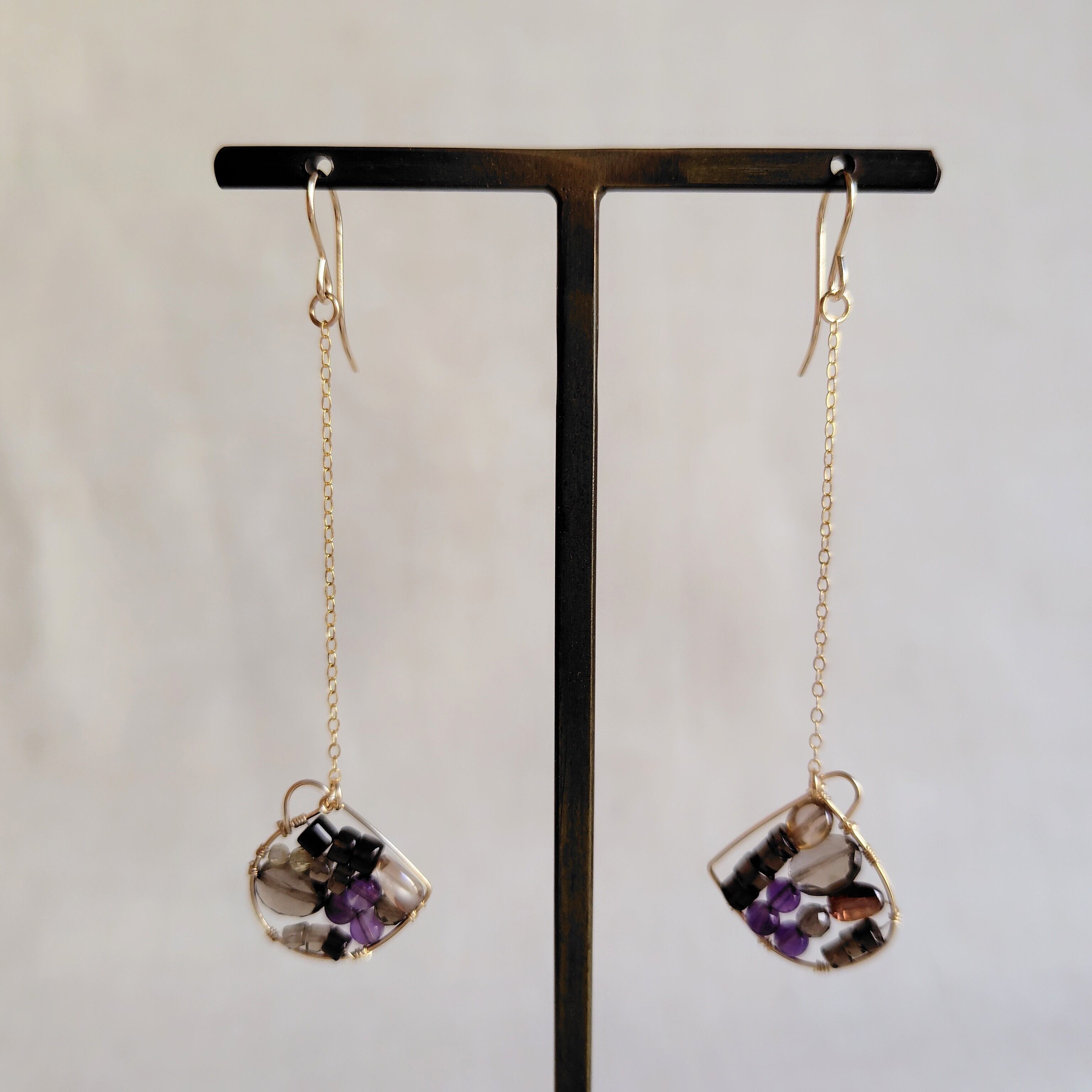 中にスモーキークォーツ、アメジスト、ジルコンを詰め込んでみました。