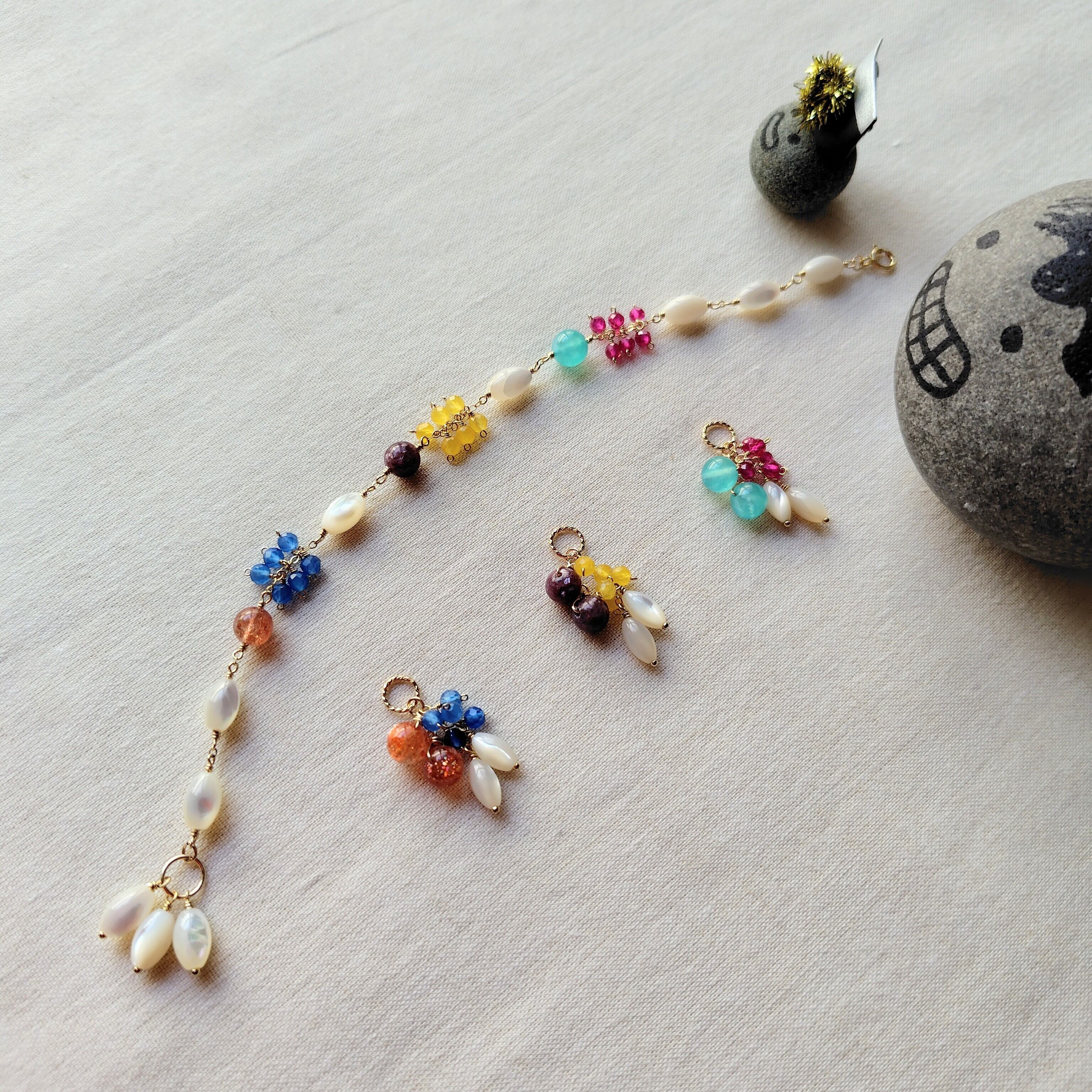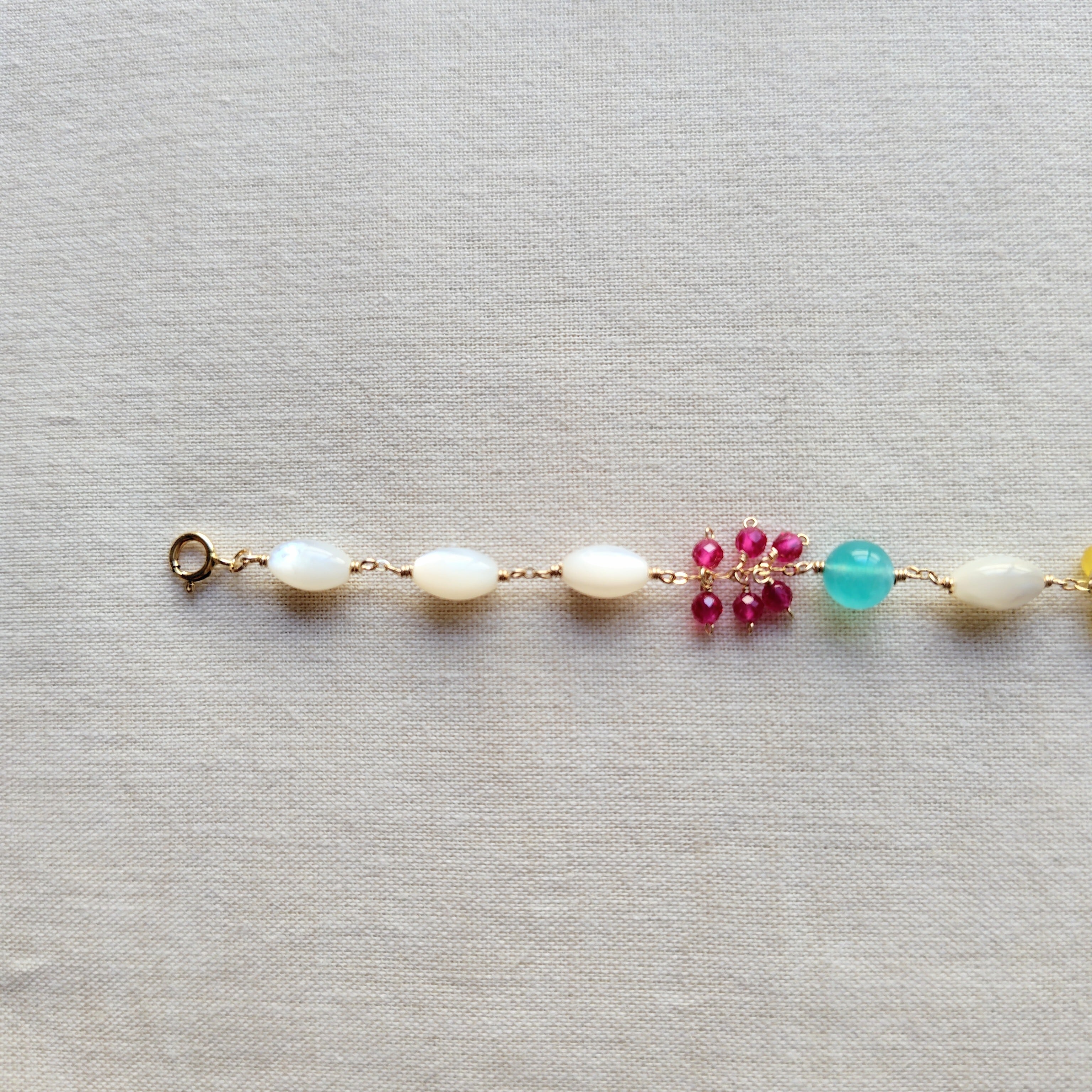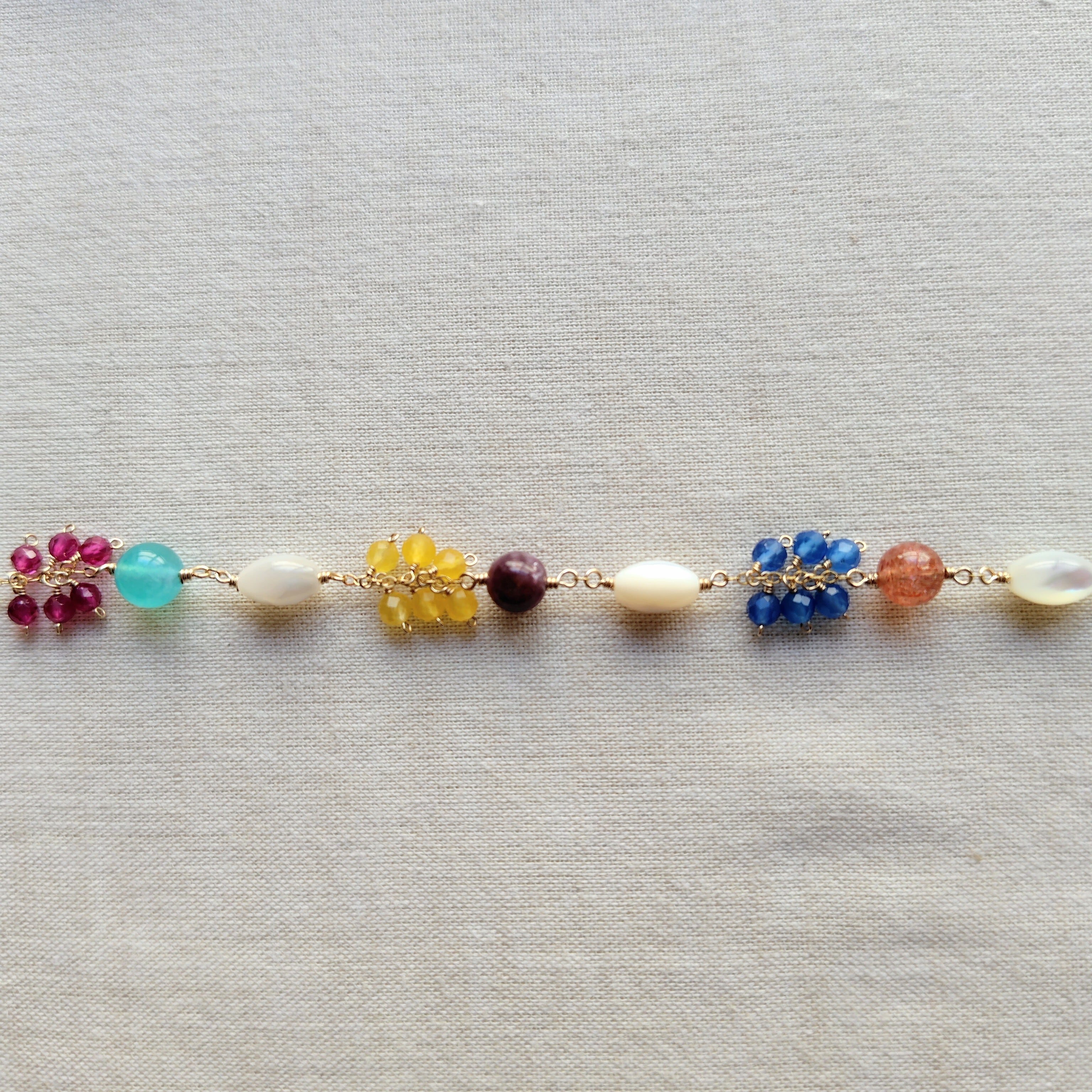 色とりどりの色石を花のガーランドのように、つなぎ合わせて。