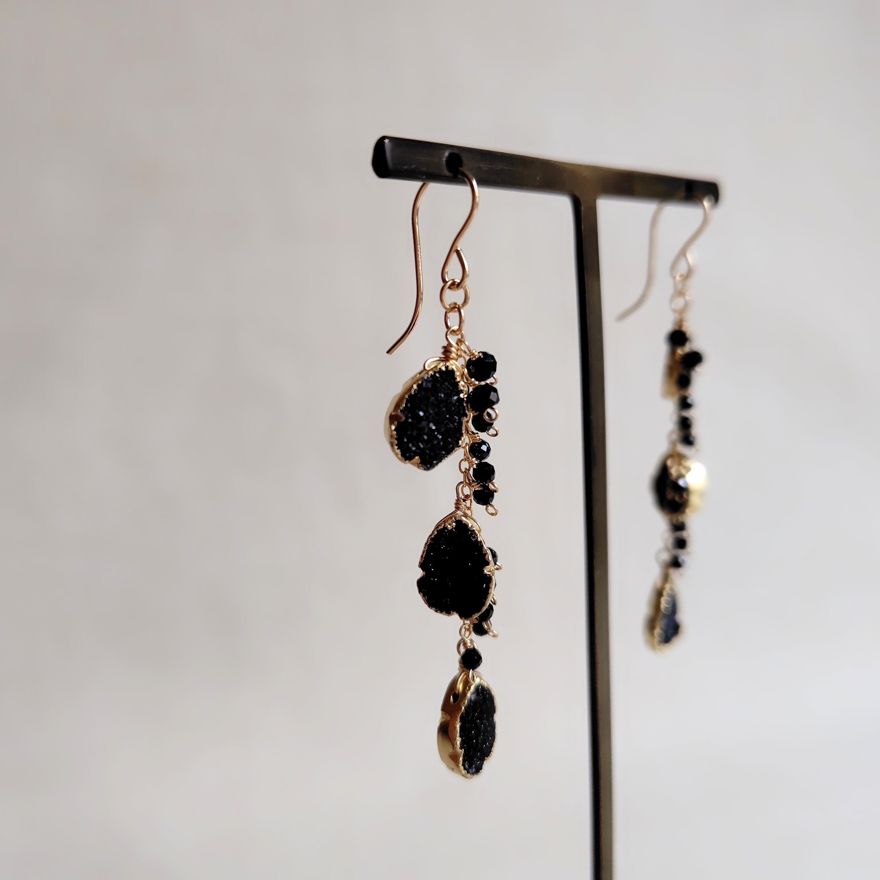 黒のシックな耳飾り、