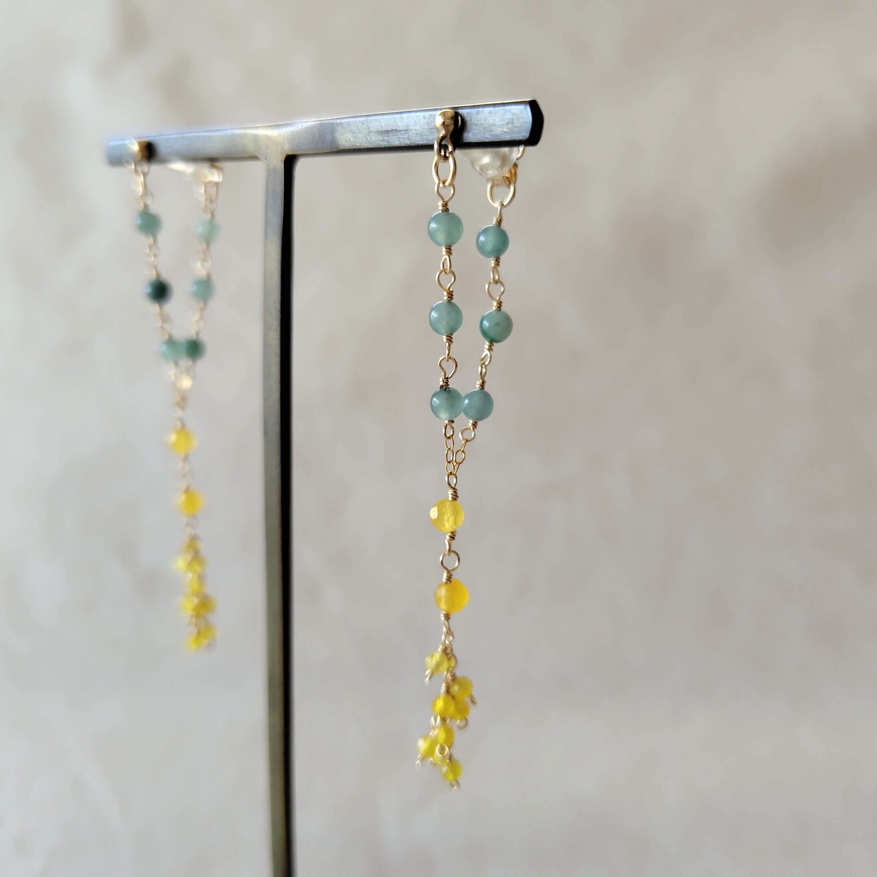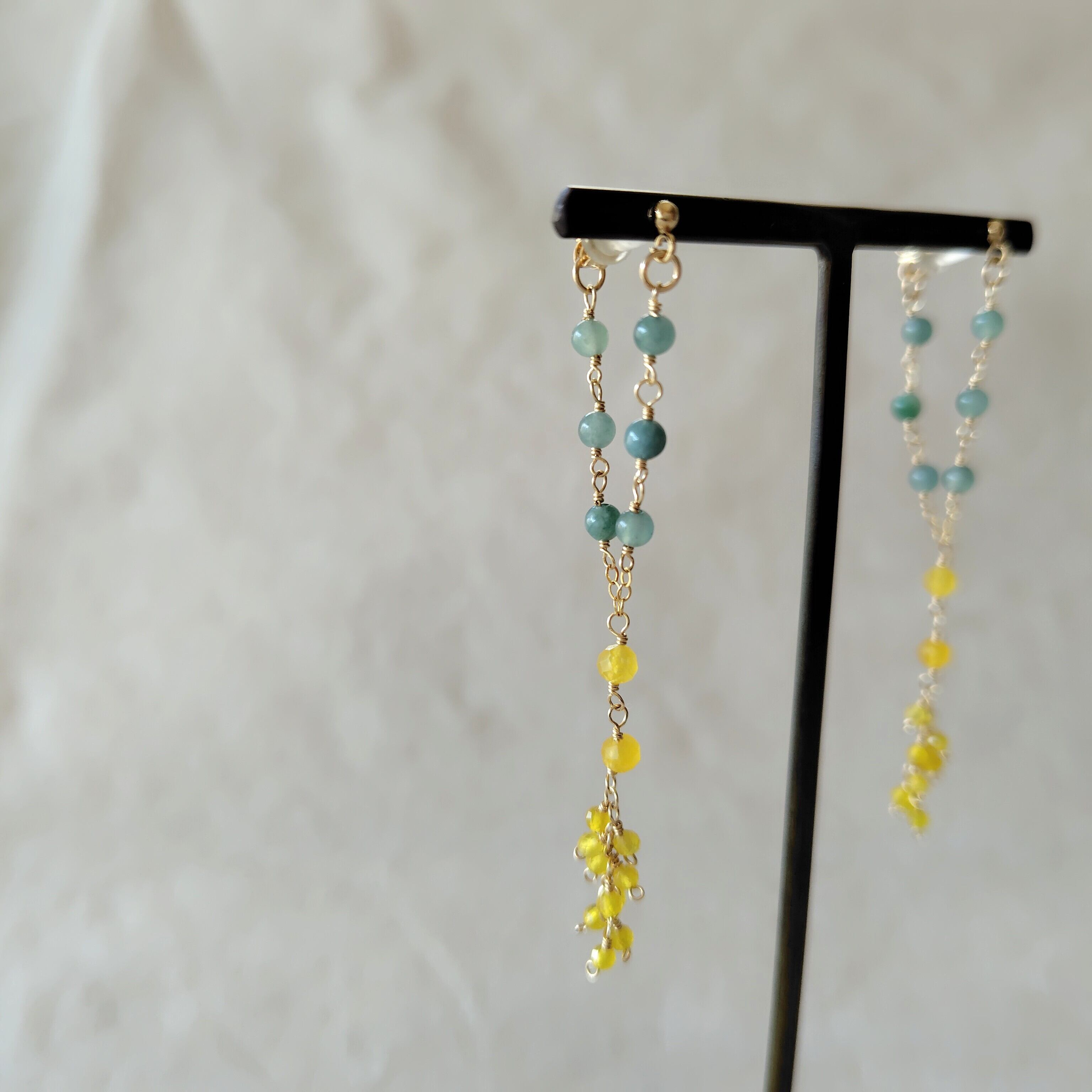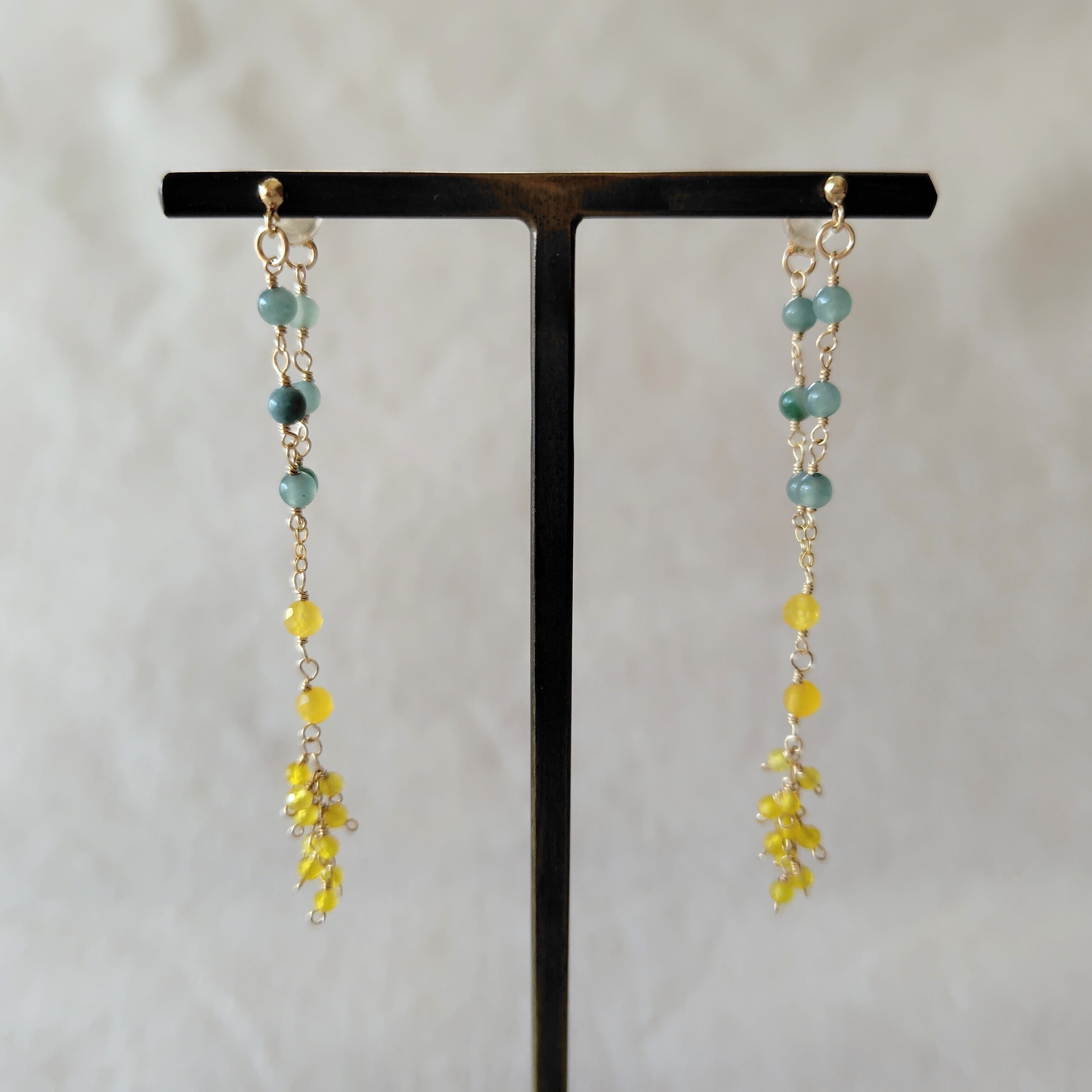 感謝の色は/ミモザイエロージェードと翡翠のV字耳飾り