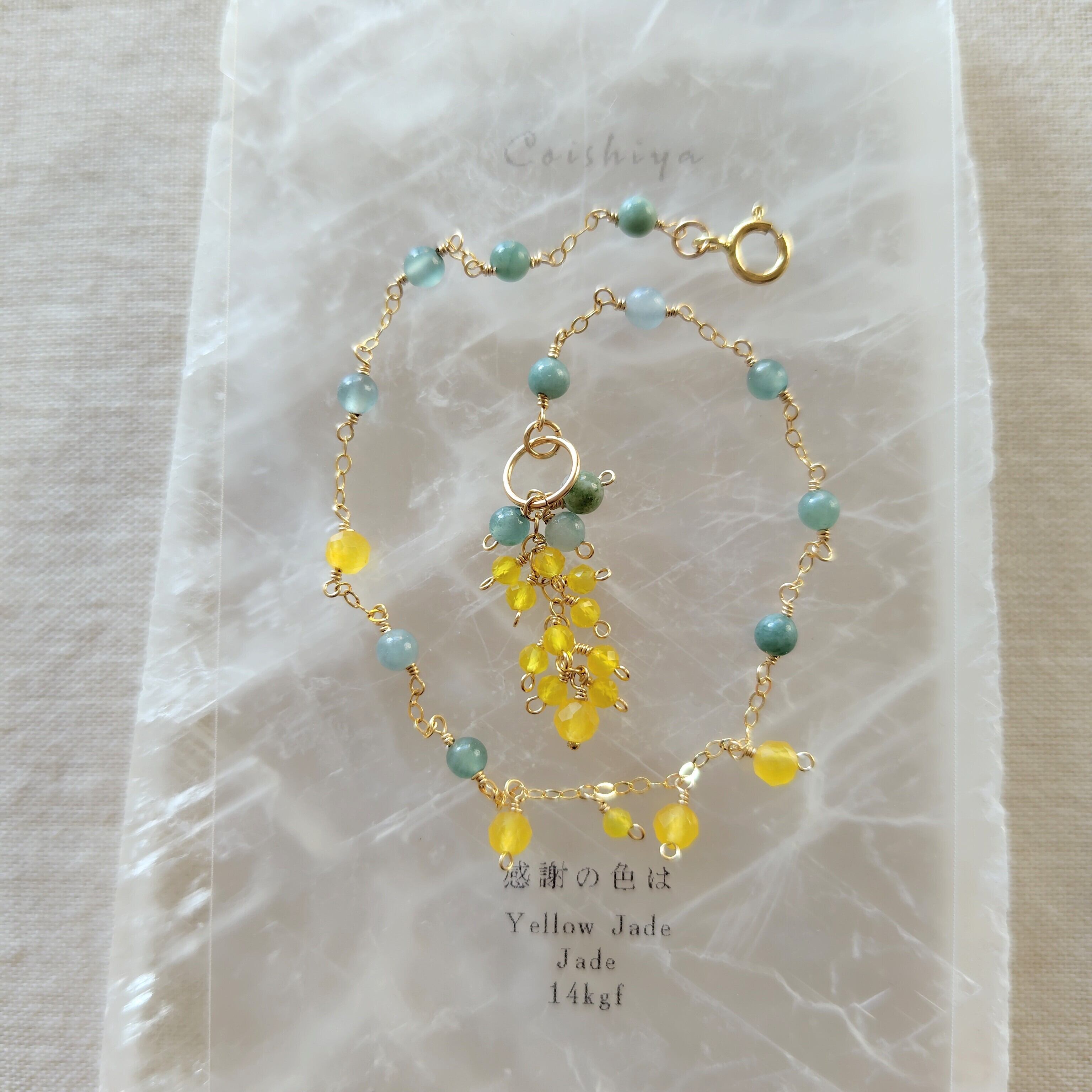 感謝の色は/ミモザイエロージェードと翡翠のブレスレット