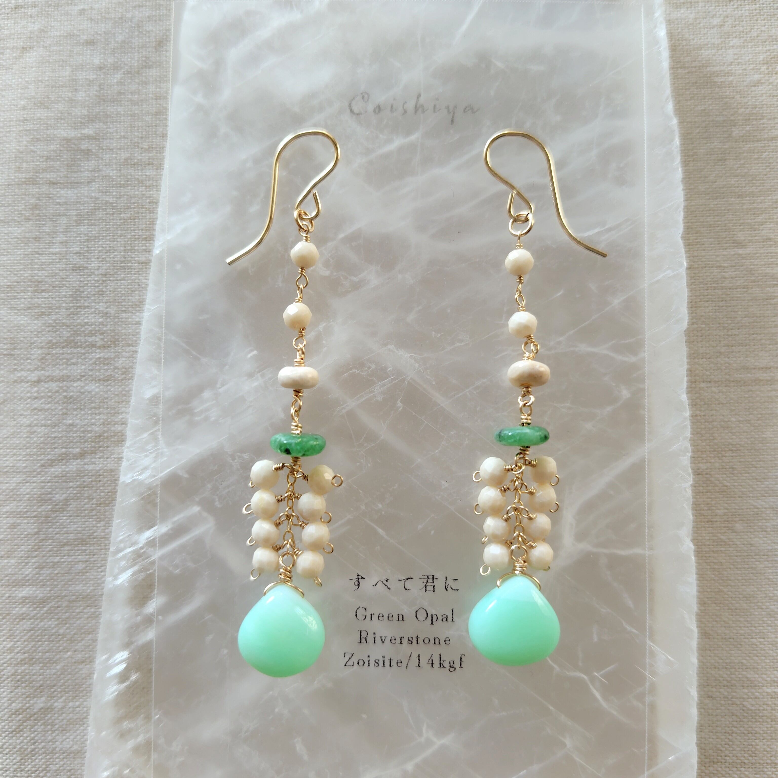 すべて君に/リバーストーン・グリーンオパール・ゾイサイトの耳飾り