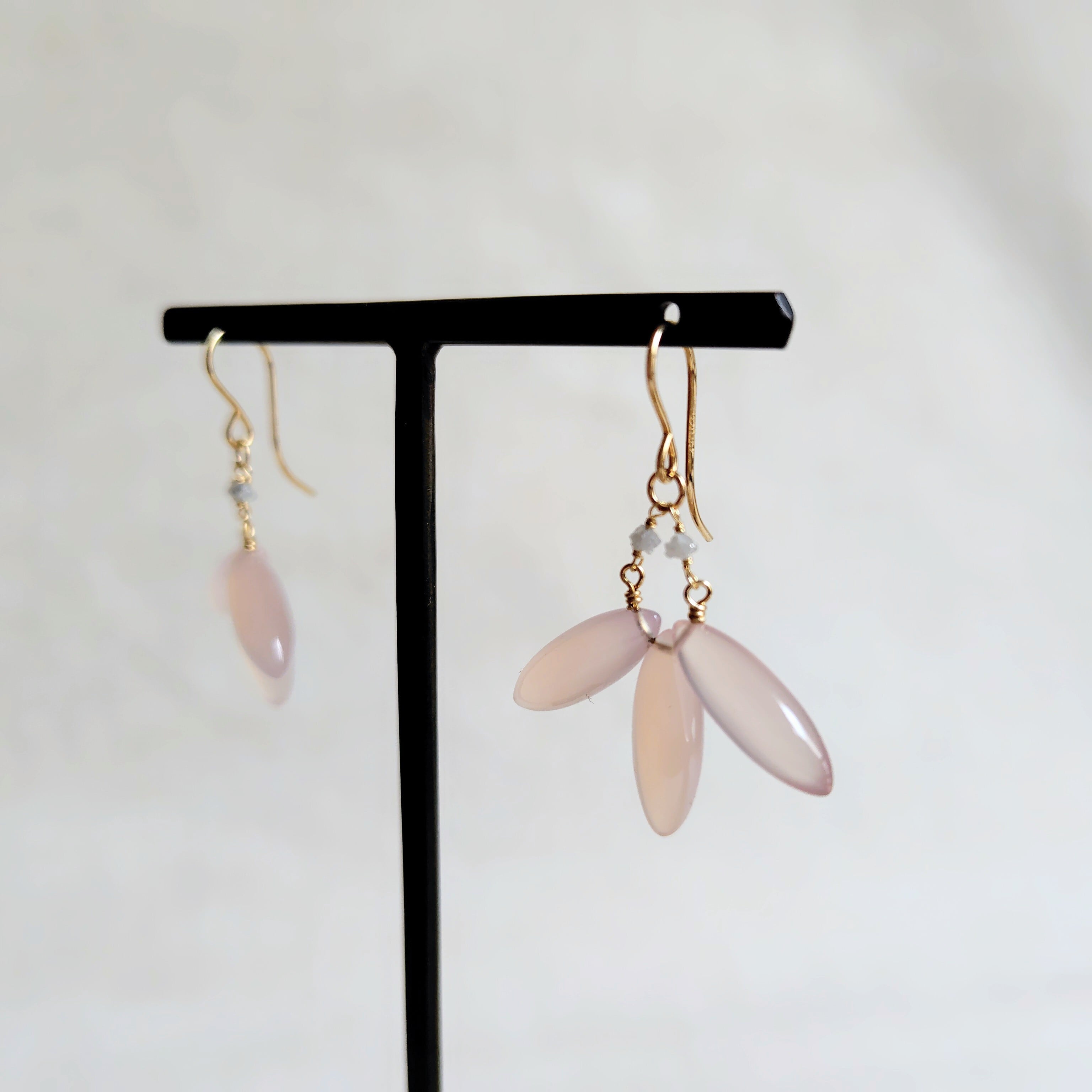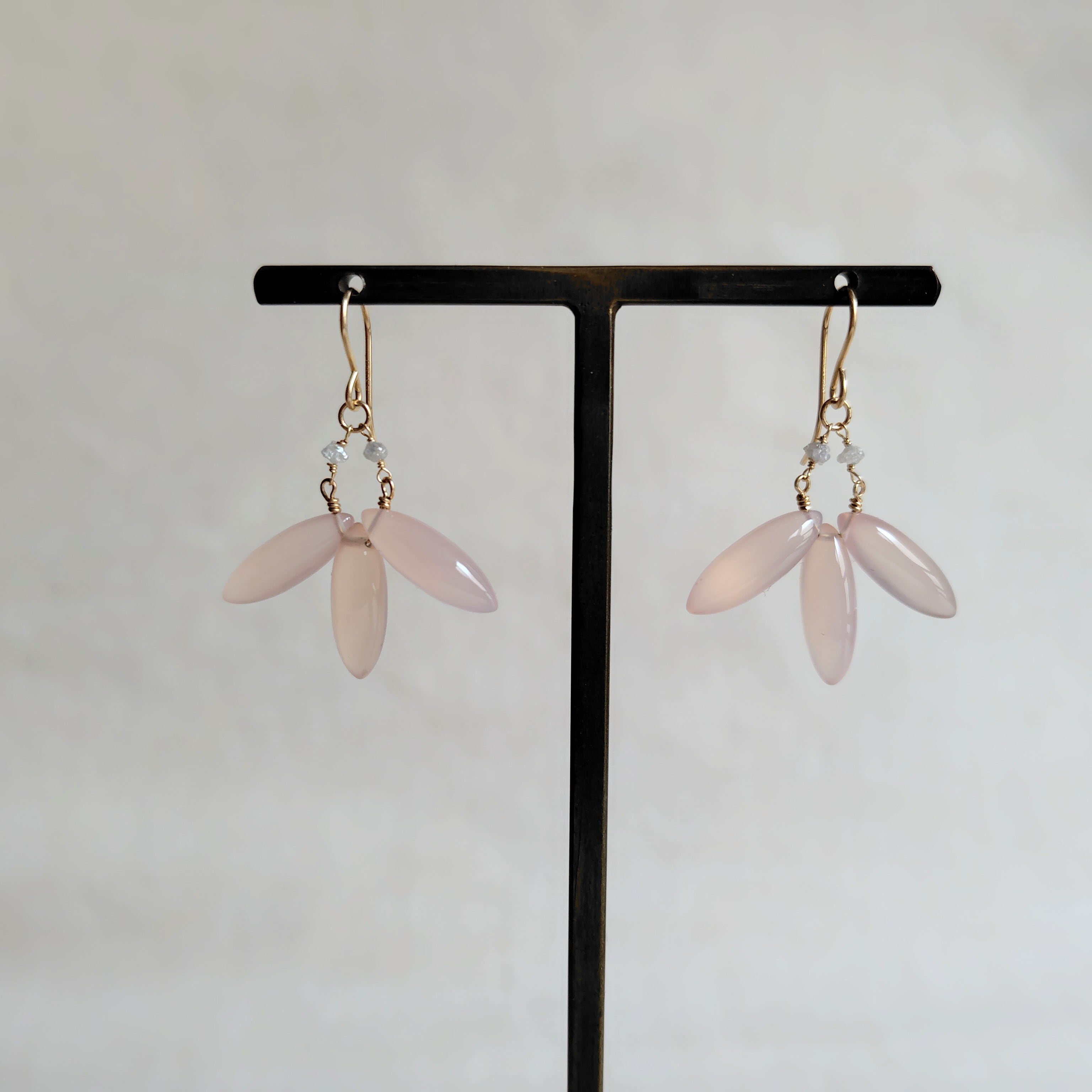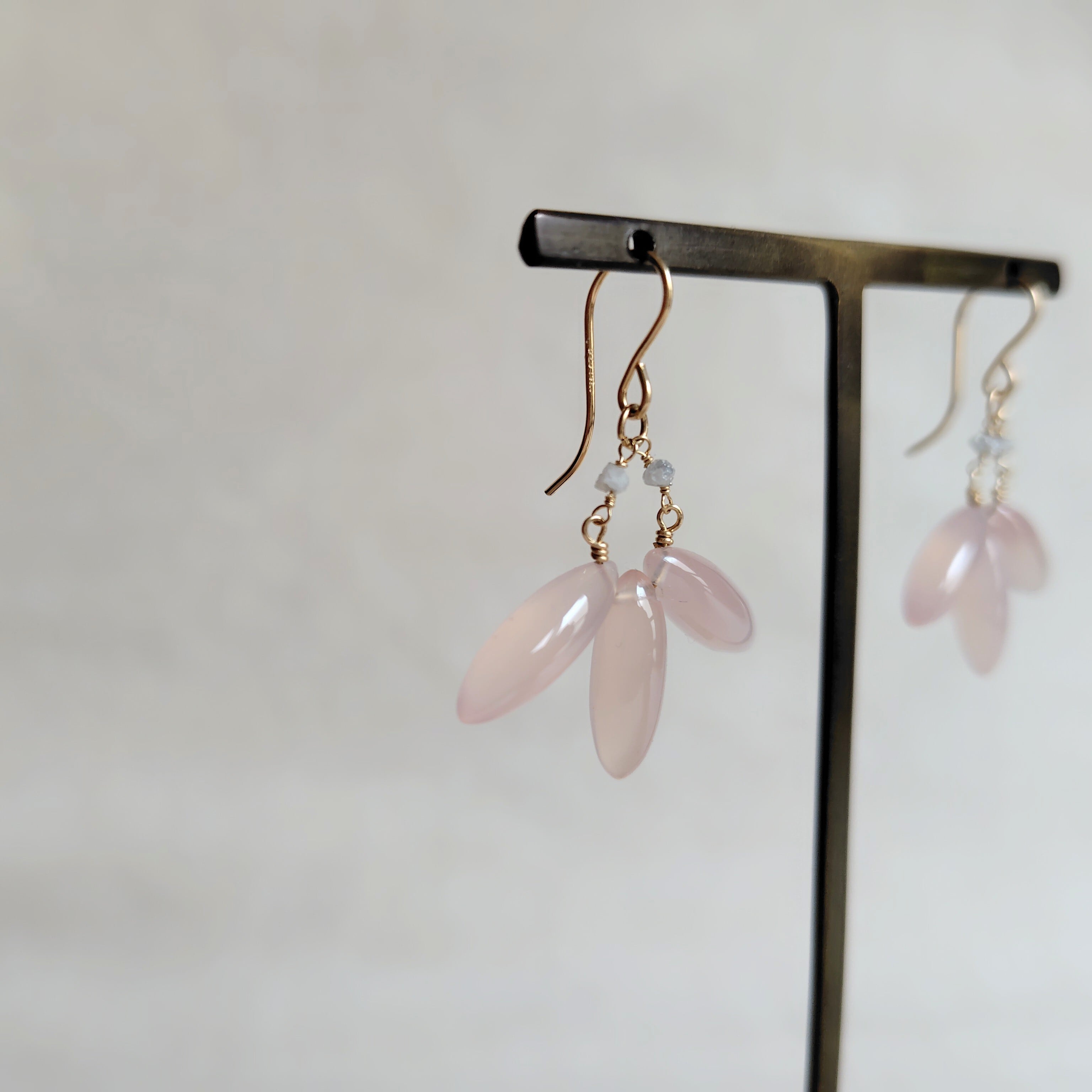 ラフチップのダイヤモンドにて春めかし、耳飾り。